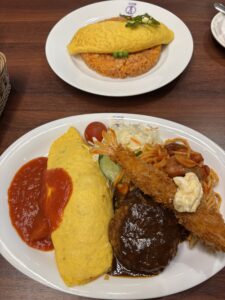 オムライス(完熟トマトソース)はともかくハンバーグもエビフライもナポリタンも手作り感がありソースも込みでどれも美味しかったです。