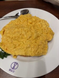 そして今回訪れたのは「たいめいけん」です。オムライスと色黒で歯の白い茂出木シェフで有名なお店です。40分待ちました。